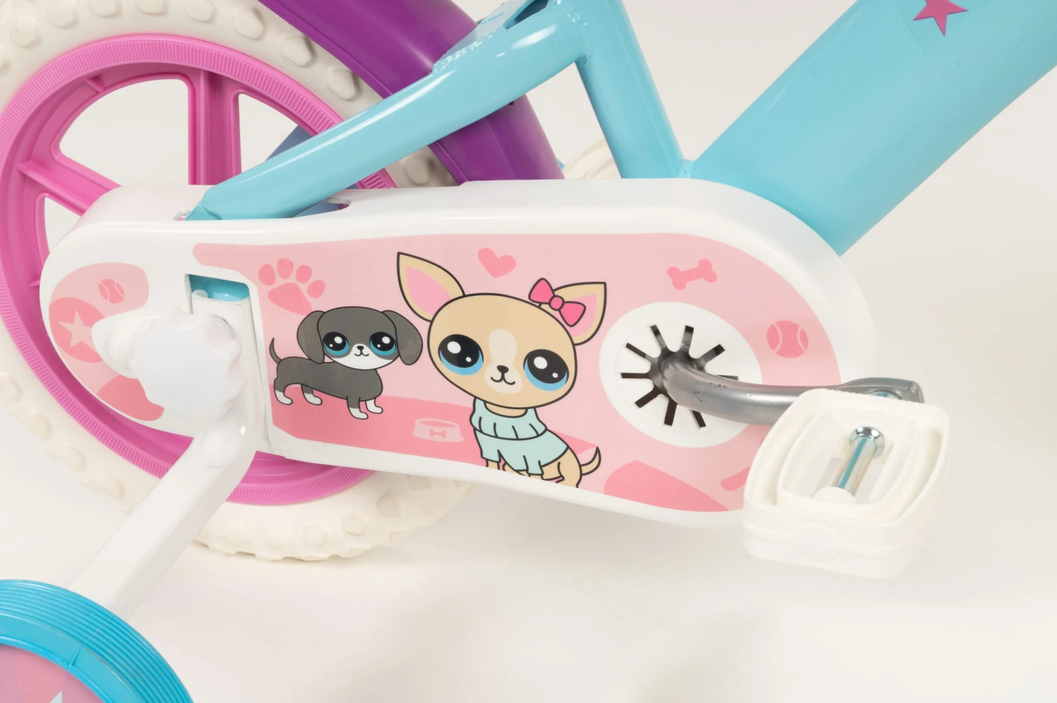 This colourful Pets themed bicycle comes with a fixed rear wheel; so when the pedalling stops, the bikes comes to a halt. It also has a powerful V-type front brake. it features 12″ wheels and puncture-proof EVA tyres and also comes with removable stabilisers. This 12″ bicycle also comes with an adjustable saddle and handlebars, a front basket and colourful Pet decals. Suits ages 3 – 5 years. Child height range 85 – 100 cm.