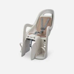 This baby seat lets you bring your child on bike rides. Suitable for ages 9 months to 4/5 years (up to 22 kg). Fixes onto your bike’s pannier rack.A bike baby carrier that fits onto classic pannier racks. Meets ISO11243 standard. Adjustable 3-point safety belt. Ergonomic shape allows helmet use. Height-adjustable foot rests.