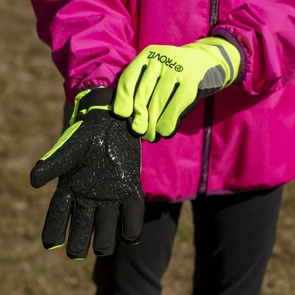 The Classic cycling gloves are designed in exactly the same way as all of our adult cycling gloves. They have have a day-glow fluorescent outer-layer with reflective trim across the knuckles, cuff and side panel to give good visibility during the day and night. Padded palms help to give enhanced comfort and the silicone web grip gives great grip when it’s raining. Underneath the outer layer there is an internal waterproof layer made from a Korean Hipora insert.
