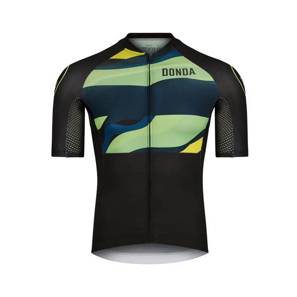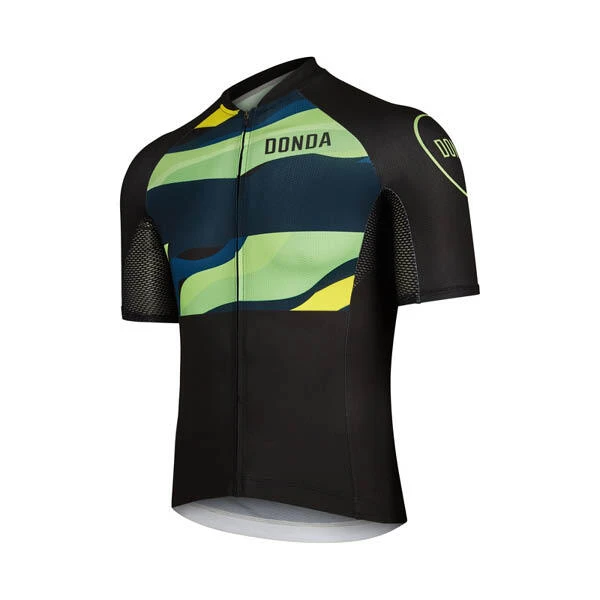 The Regen collection celebrates re-generation of the outdoor spirit. As we gather new respect for the outdoors and the freedom it brings we reset and regenerate. A fresh natural lemon and lime design colour-way allow you to ride with a new purpose this summer. The Donda word-mark is featured on both arms in a signature circle and on the left breast of the jersey. The Donda crest logo is then featured at the top of the neck line.