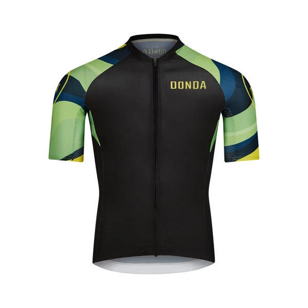 The Regen collection celebrates re-generation of the outdoor spirit. As we gather new respect for the outdoors and the freedom it brings we reset and regenerate. A fresh natural lemon and lime sleeve design allow you to ride with a new purpose this summer. The Donda word-mark is featured on both arms in a signature circle and on the left breast of the jersey. The Donda crest logo is then featured at the top of the neck line.