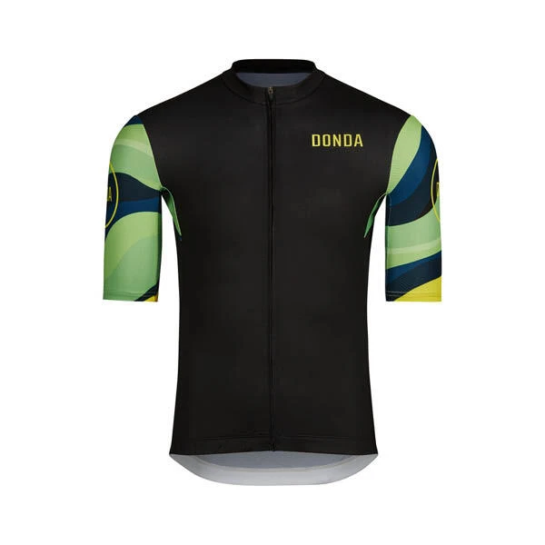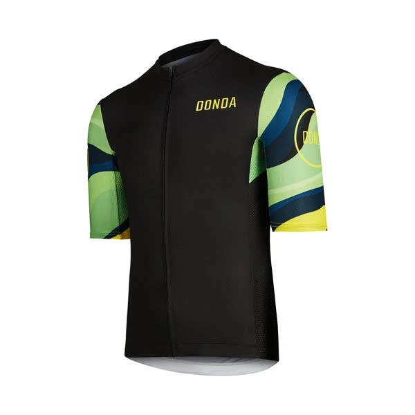 The Regen collection celebrates re-generation of the outdoor spirit. As we gather new respect for the outdoors and the freedom it brings we reset and regenerate. A fresh natural lemon and lime sleeve design allow you to ride with a new purpose this summer. The Donda word-mark is featured on both arms in a signature circle and on the left breast of the jersey. The Donda crest logo is then featured at the top of the neck line.