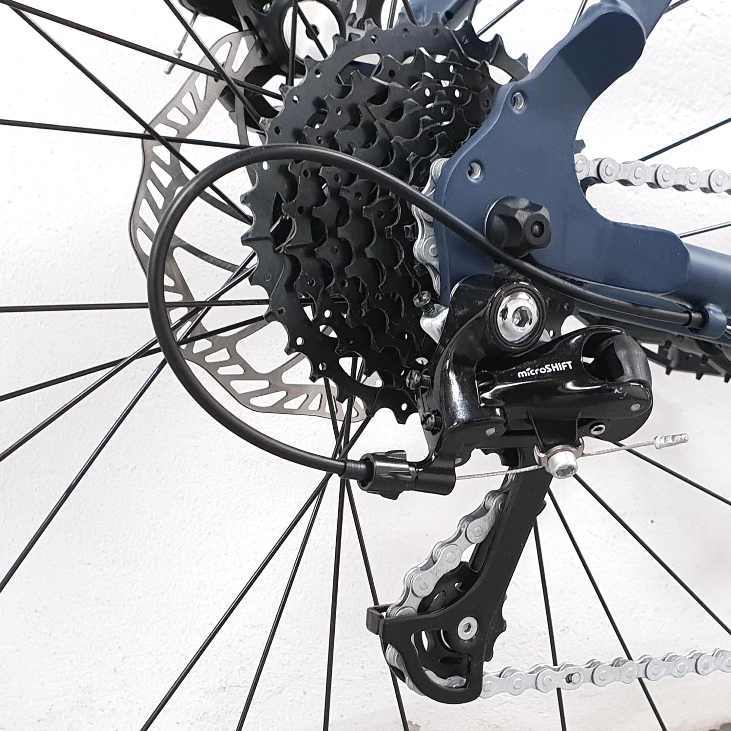 High-precision, sturdy Microshift 8-speed shifter. Very comfortable ergonomy: shifter with a pleasant feel, whatever the shape or size of the hand. Front Shimano derailleur and high-precision Microshift rear derailleur