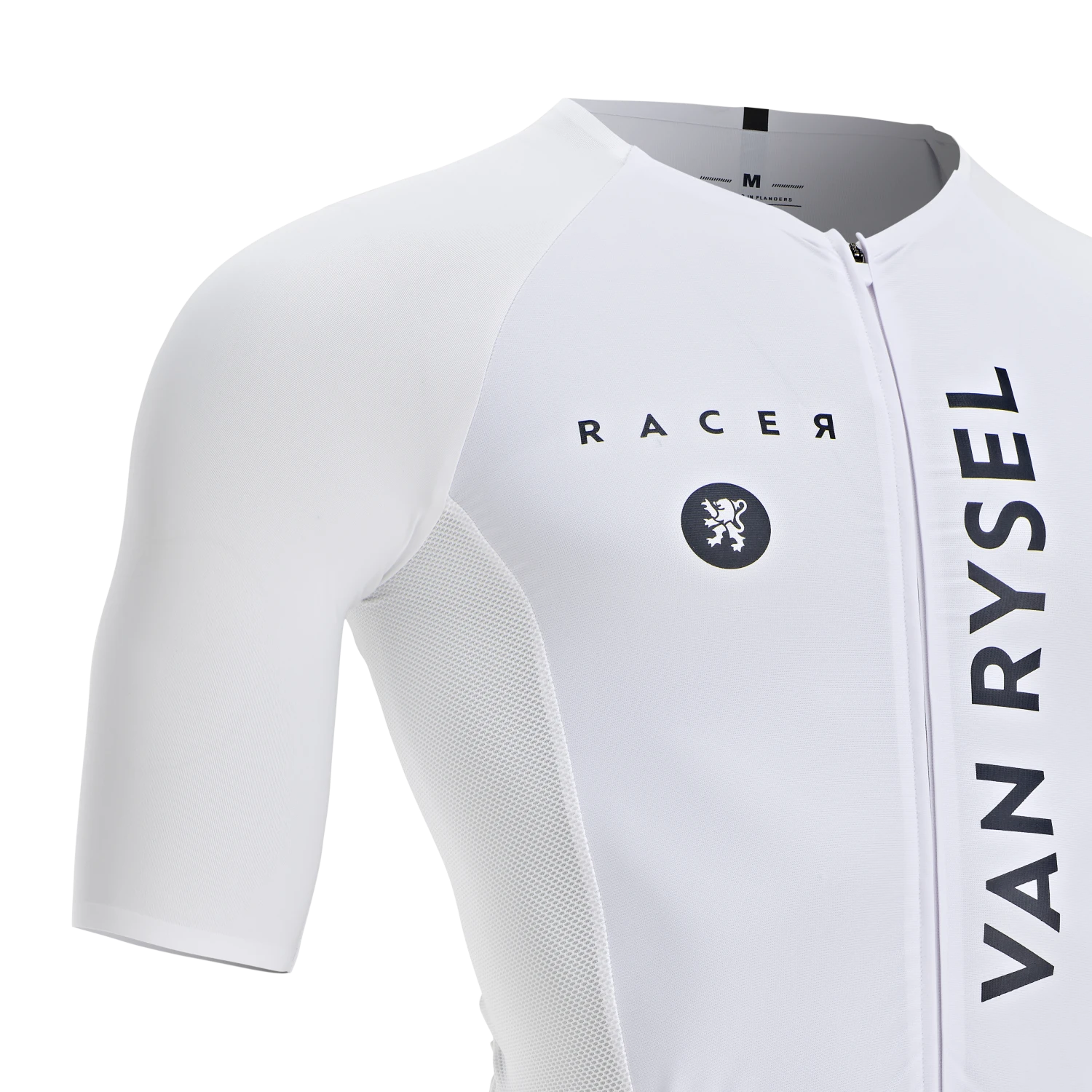 The Racer range can be identified by its aerodynamic sleeve design that covers the entire biceps and looks right at home on the pro tour