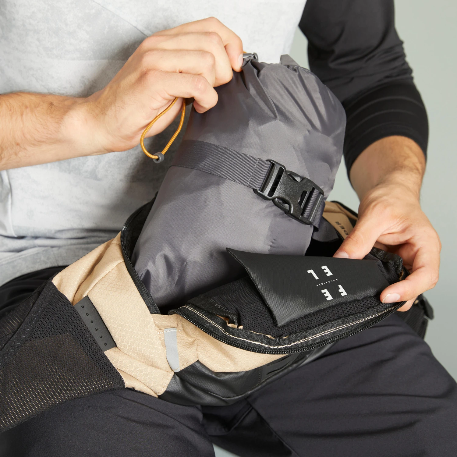 There is a waterproof zip-up pocket on the chest that you can easily access when wearing a backpack or bum bag. The pocket has a specific space for your keys and your phone so they won’t rattle around during your ride.