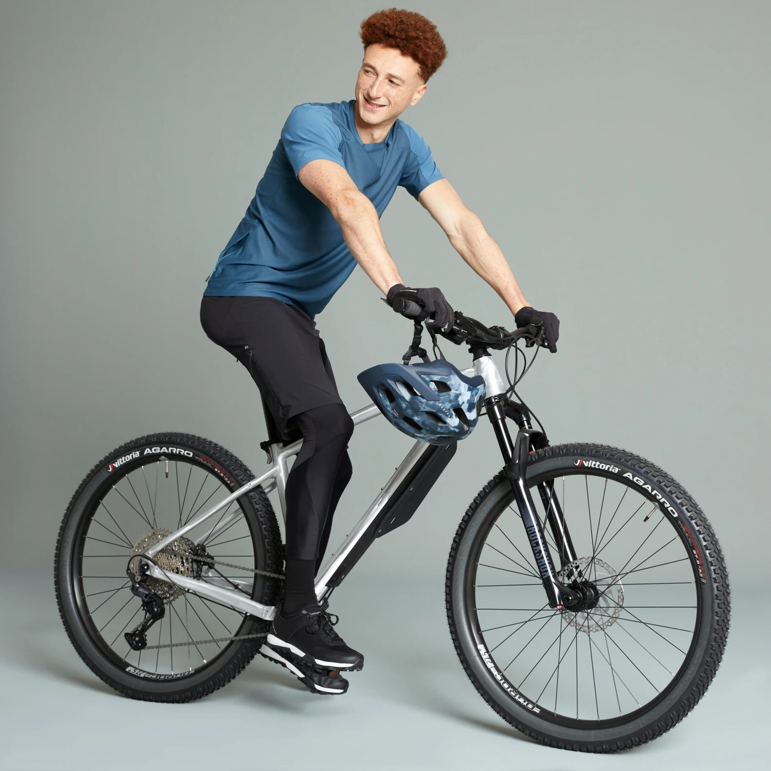 Think about wearing a helmet and gloves when you start mountain biking: not just for falls, but also to protect yourself from low branches! For comfort, wear a pair of shorts with a pad to prevent chaffing. A water bottle or hydration backpack will keep you hydrated. And finally, puncture repair spray so you can finish your ride without having to fiddle with repair tools.