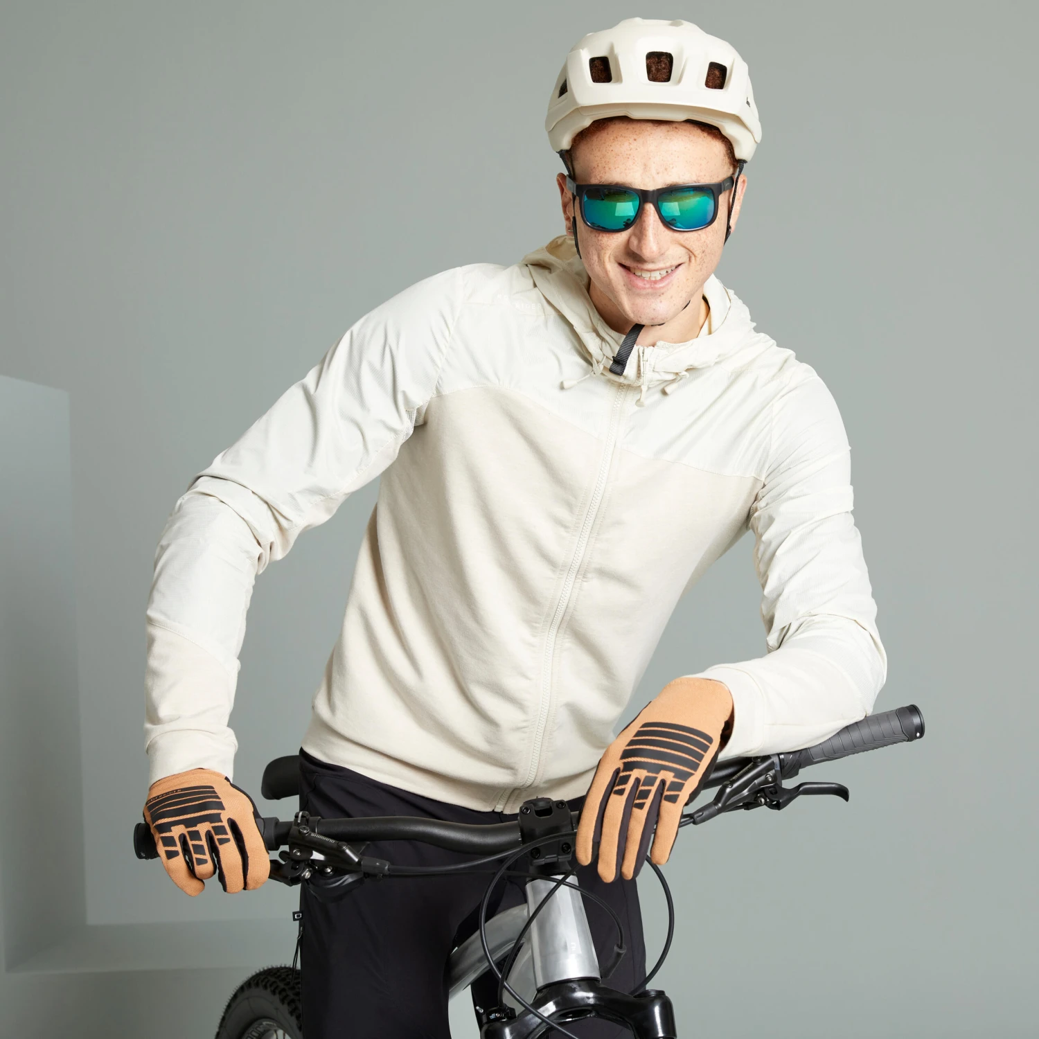 Keeping your hands covered all the way to the fingertips is key to preventing scratches from vegetation, especially in the woods or on single tracks. What’s even more important, when you fall, is that your reflex is to put your hands out to cushion yourself. Mountain biking gloves prevent scratches and absorb vibrations.