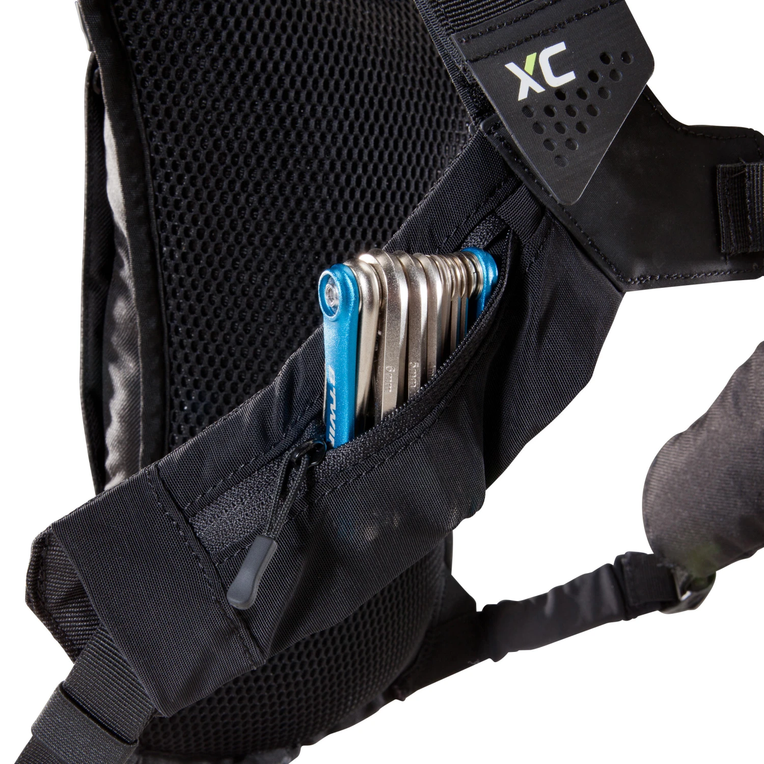 We have designed this XC Lite hydration backpack with front pockets made of elastic mesh that provide quick access to your snacks while riding.