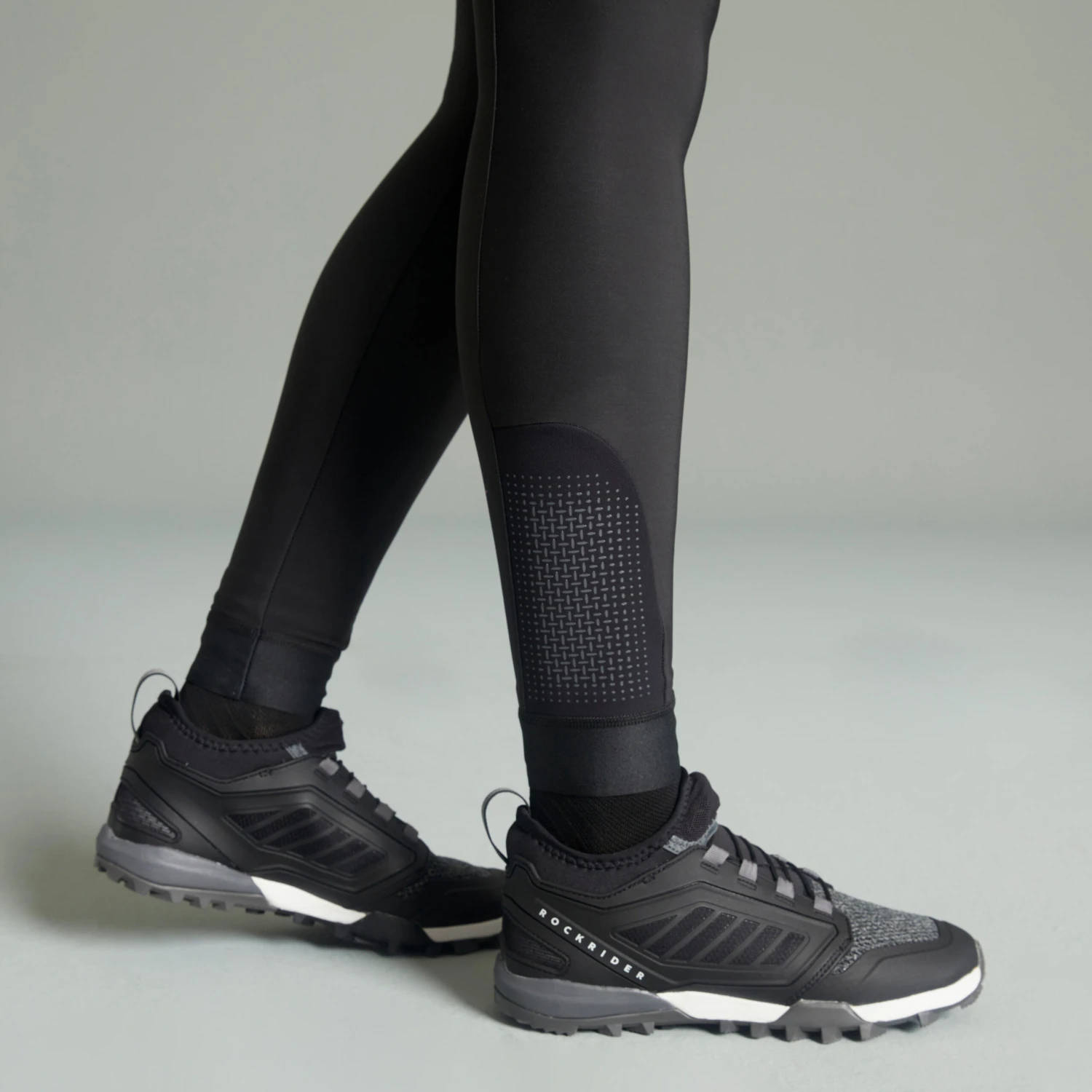 These women’s leggings are designed for MTB riding in cold weather for up to 3 hours.The cycling tights have been developed to be warm, water-repellent and resistant to rubbing. They have a wide waistband that goes high up the lower back and a zipped back pocket.