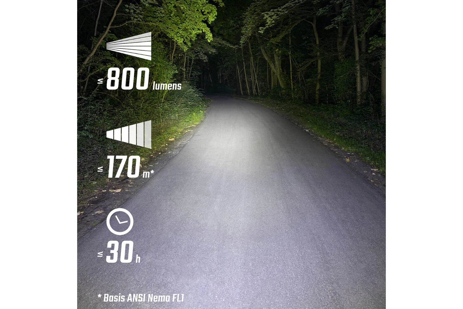 Bright light on dark trails! The Buster 800 headlight means that nothing is keeping you from nocturnal adventures. With 800 lumens providing 170 metres (557 feet) of range – sufficient power even on dark forest trails.