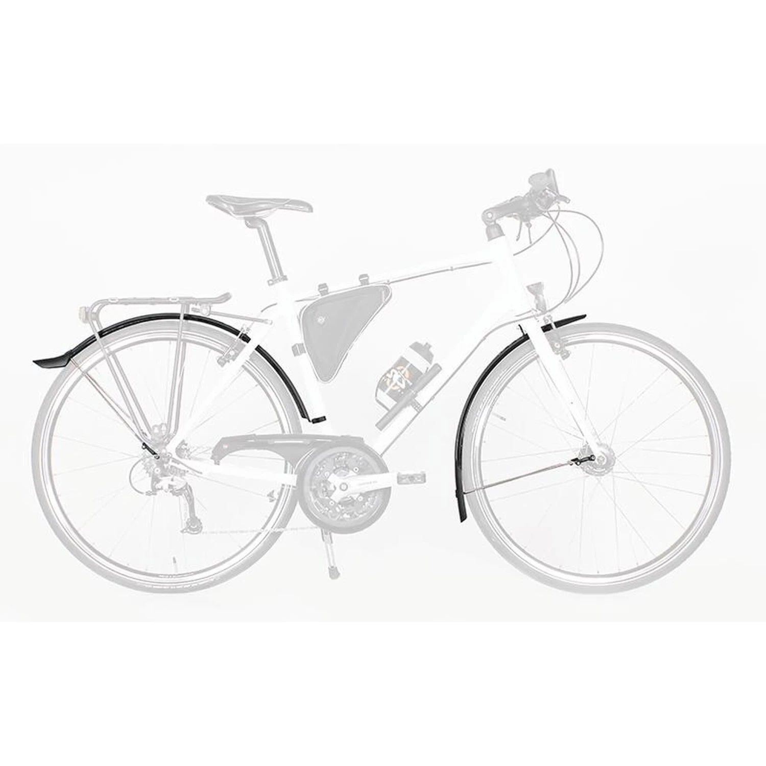 No matter where you are, in the city, the woods or the field, the SKS Velo 42 Urban is the ideal companion to keep you dirt-free and dry. The 28” snap-on mudguard set can be mounted to frame tubes of 25 to 35 mm diameter. For an extra secure mounting of the rear mudguard we also offer a Ø 3,4 mm stainless steel U-stay as optional accessory. weight: 170 g max. outer diameter: 35 mm wheel size: 27,5″ (650b)”, 28 ” tyre width: 1.1″-1.5″ length front fender: 715 mm length rear fender: 870 mm