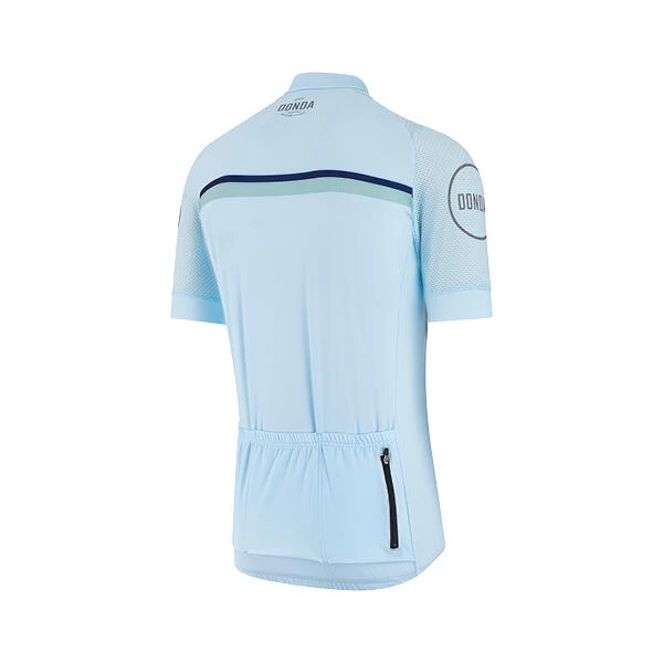 The Skyward collection celebrates the simplicity of a view. Any expanse of sky is worth seeing. The classic striped design mimics the contrast of the horizon. The Donda word-mark is featured on both arms in a signature circle and on the left breast of the jersey. The Donda crest logo is then featured at the top of the neck line. The combination of technology, quality and unique design allows our everyday cyclist to ride the toughest climbs, leisurely tour or the most straightforward of commutes.