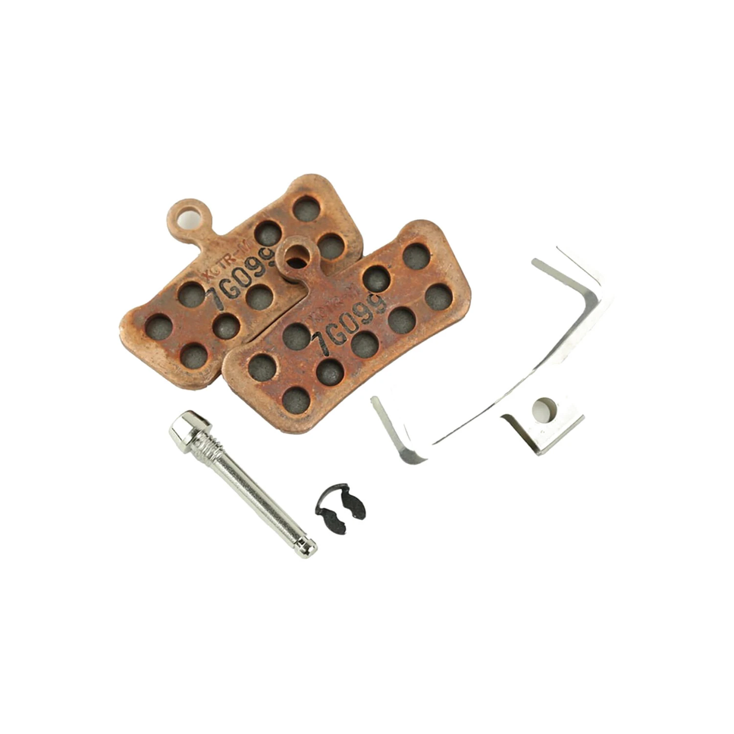 SRAM metal sintered compound with steel backing plates for SRAM Guide (RSC, RS and R models) Disc Brakes. Each pad kit includes two pads, a spreader spring, pad pin and clip.