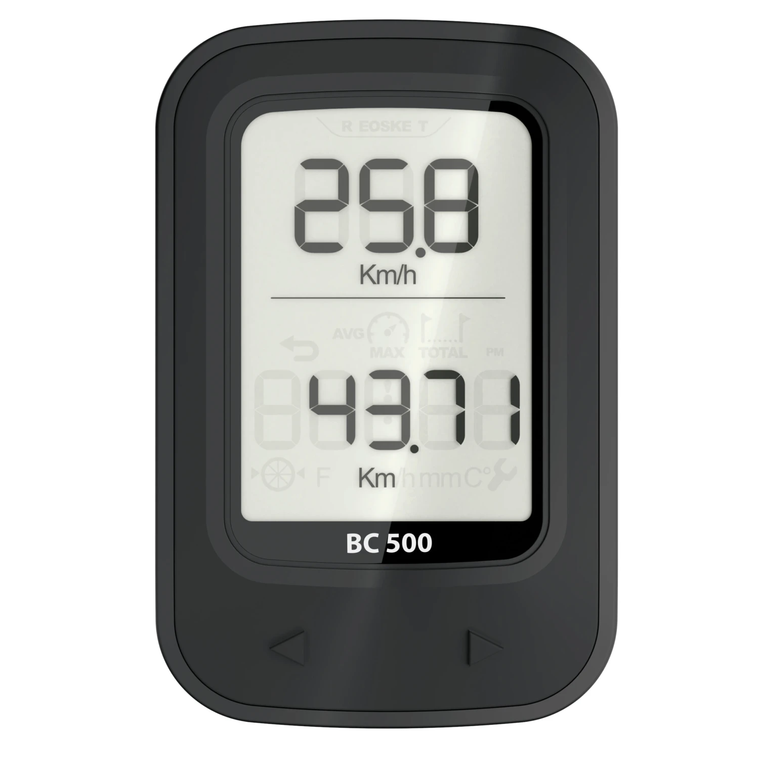 The 500 cyclometer has been developed by our engineers for cyclists looking for a simple wireless cyclometer to reliably measure their performance.Discreet and very easy to install (magnet-free sensor that mounts on the wheel hub): 8 basic functions with wireless transmission at up to 3 metres, allowing mounting on the rear wheel.