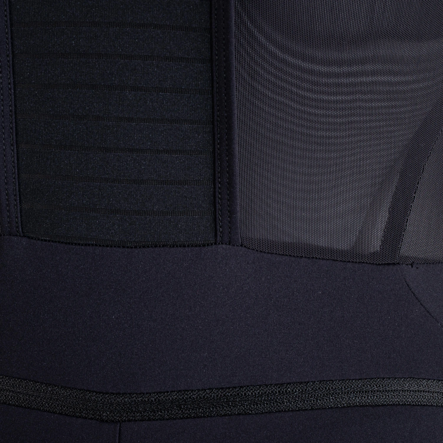 We replaced the bib with a design that covers more of your chest and breathable fabric that stretches to fit your bust, plus a half zip on the neck to make it easier to put on.