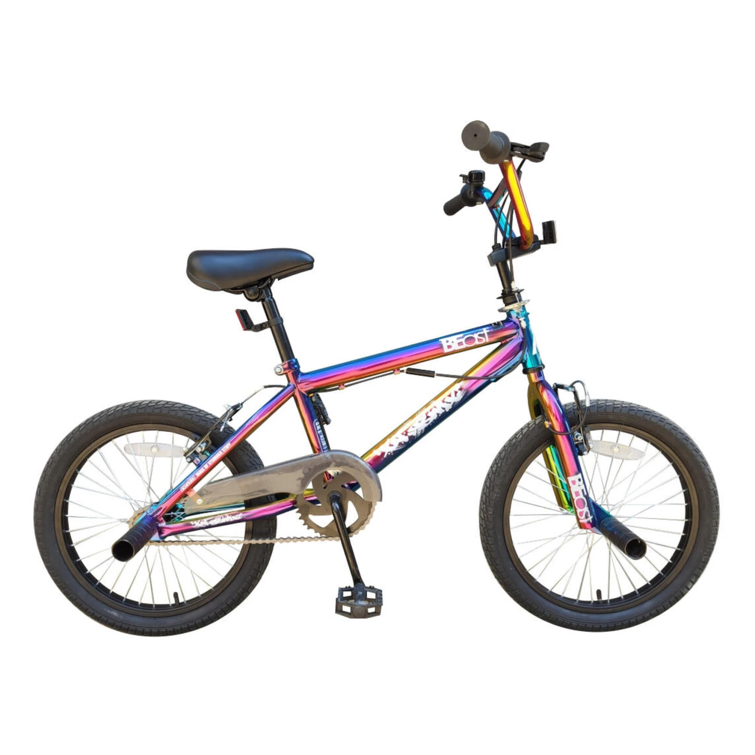 The party piece of the 18″ is surely it’s 360 gyro brake system, allowing unlimited rotation of the handlebars without cable tangle! Featuring single speed gearing keep it simple & minimise maintenance, complimented by 18×1.95″ pneumatic BMX tyres, a Top-load stem, riser BMX handlebars with mushroom grips, and a chunky saddle.